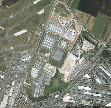 Or, lorsqu’on regarde de plus près les grandes opérations d’urbanisation à dominante de programmes logistique et de distribution et répondant à une demande croissante de ces secteurs vitaux pour l’économie, on observe d’impressionnantes nappes d’artificialisation, tournées vers l’optimisation de l’accessibilité du fret. En voici quelques exemples, dont celui, éloquent du Val Bréon à Châtres (zone logistique dont la taille est presque 2 fois plus grande que l’ensemble du quartier des Docks de Saint-Ouen, anciennement industriel). Ces exemples, rapportés à l’intention de densité prédominante depuis la loi SRU posent d’importantes questions de répartition des compétences territoriales. Comment contrôler une stratégie d’urbanisation à l’échelle métropolitaine ? Mais aussi, comment répondre à la demande en entrepôts de taille aussi massive en respectant des ambitions en matière de contrôle de l’étalement urbain ?