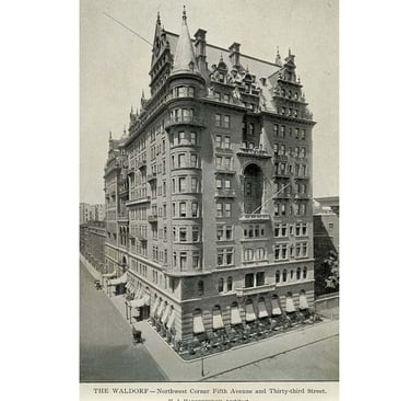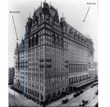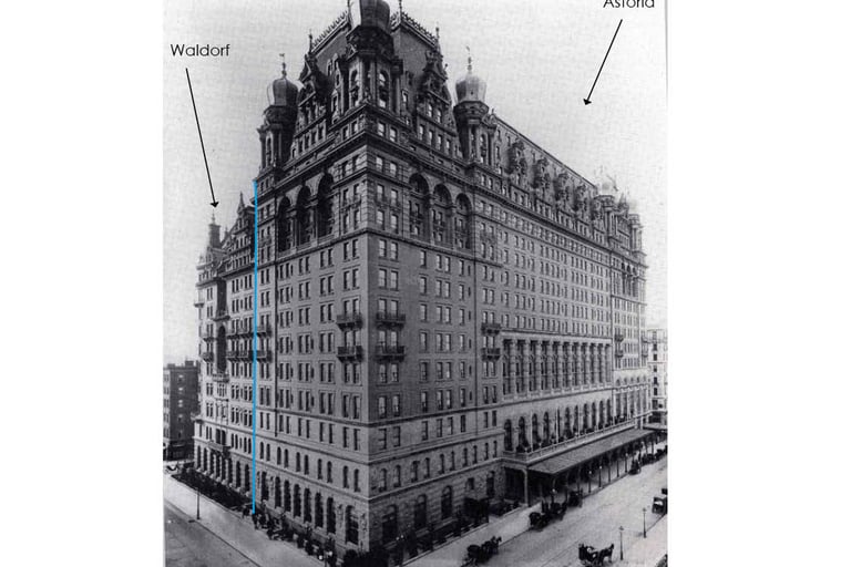 En 1893 l’un des cousins obtient l’autorisation de démolir la maison de gauche et de fusionner avec les parcelles à l’arrière sur la 34ème (qu’on ne voit pas sur la photo) pour y faire un hôtel, Il s’appelle Waldorf.