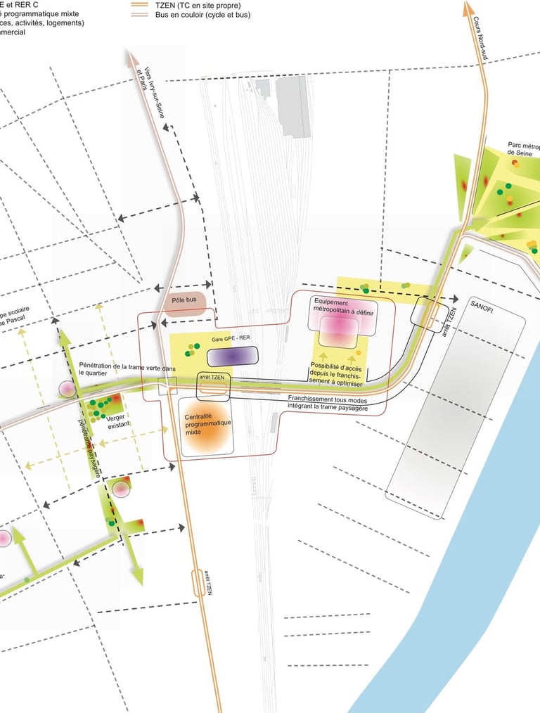 Programme : activités, bureaux, logements - gare GPE - équipements