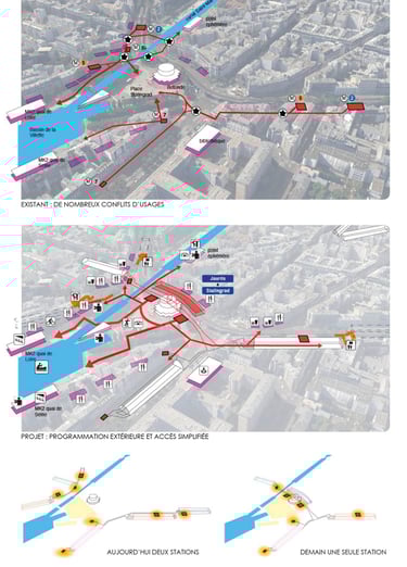 Proposition : Une seule grande station regroupant toutes les lignes autour de la place Stalingrad : 4 actions