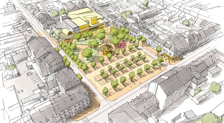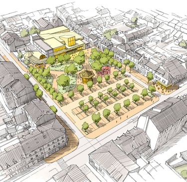 La place carré (ou place de la république), un nouveau centre piéton au centre du système urbain
