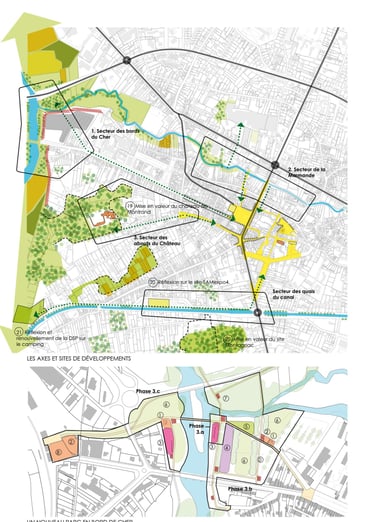 • Axe Est-Ouest en reliant les bords du Cher, la rue Barbusse, le centre-ville et vers la Pyramide