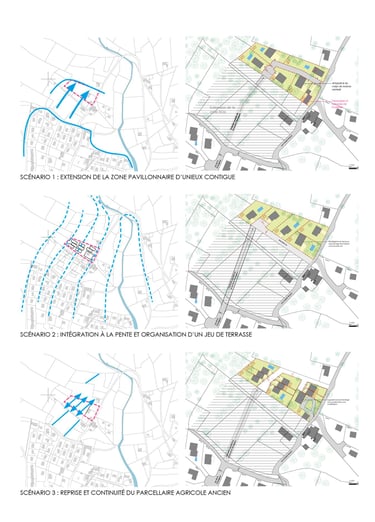 3 scénarios ont été élaborés qui illustrent des partis pris paysagers forts et différents :